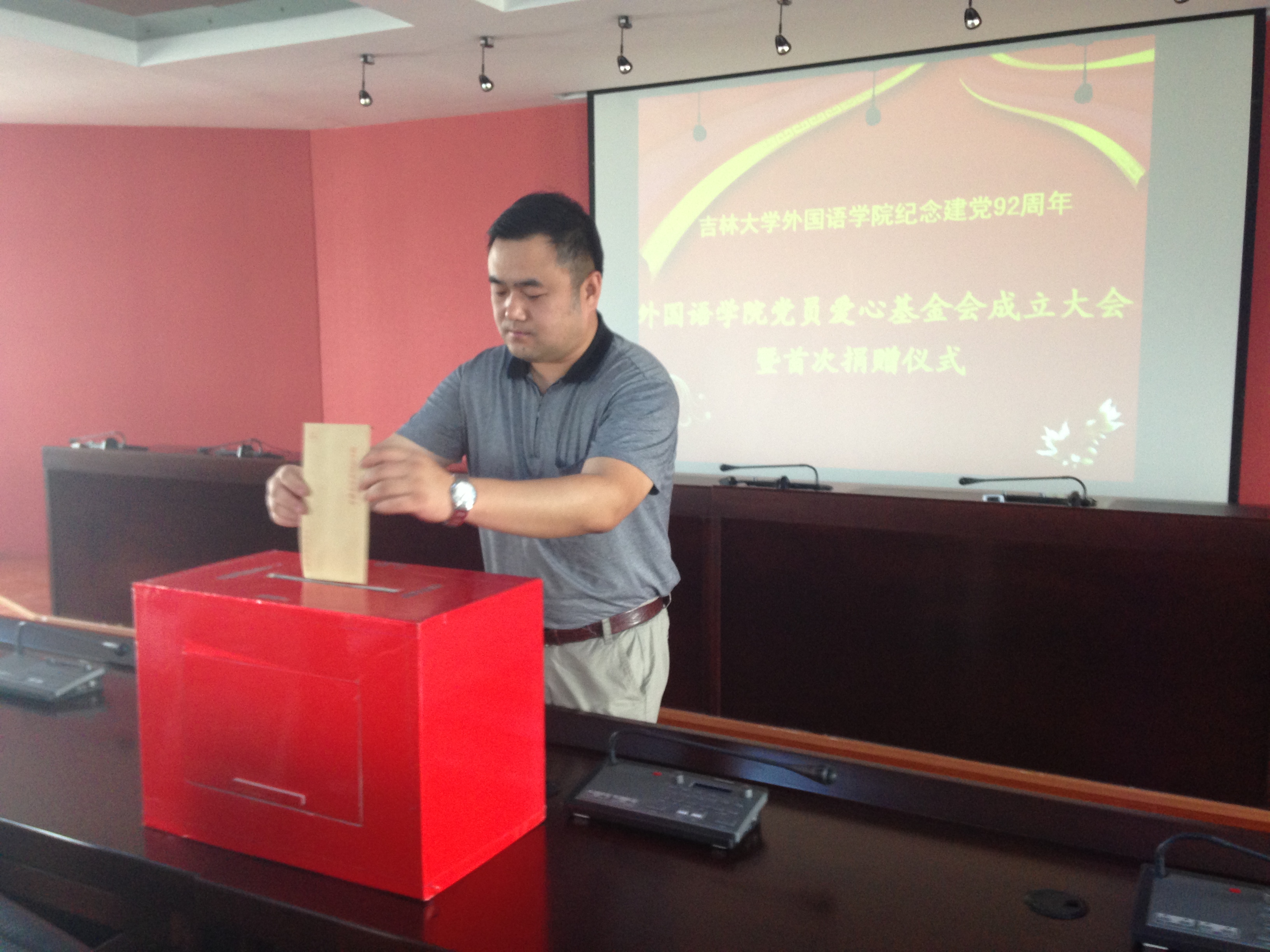 为庆祝中国共产党建党92周年,学习贯彻十八大精神,继承和发扬党的光荣传统和优良作风,增强党员的党性意识,进一步加强毕业年级党员党性修养和模范带头作用,全面展示毕业年级党员的优良素质与道德风尚,展现毕业生党员爱校、荣校的感恩情怀,6月25日,我院党委在外语楼501会议室举行“Betway(中国体育·必威)唯一官方网站党员爱心基金会成立大会暨首次捐赠仪式”,这也是我院“我的梦·吉大梦·中国梦”毕业生主题系列活动之一。学院党委书记逄锦彩老师、党委副书记兼副院长白宇老师出席本次活动。会议由学生工作办公室主任、本科生党支部书记葛宗梅主持。