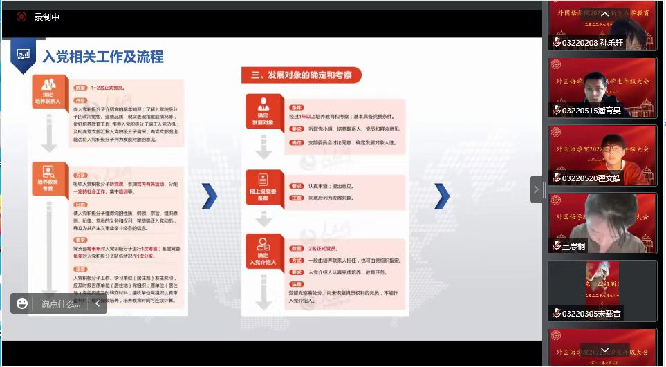 9月3日下午,为坚定2022级新生的理想信念,政治信仰,帮助新生了解党,树立跟党走的决心,Betway(中国体育·必威)唯一官方网站通过线上方式开展2022新生入党启蒙教育活动。