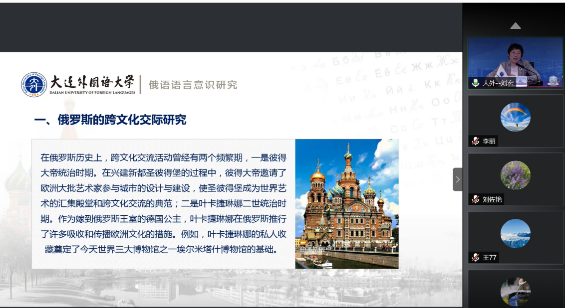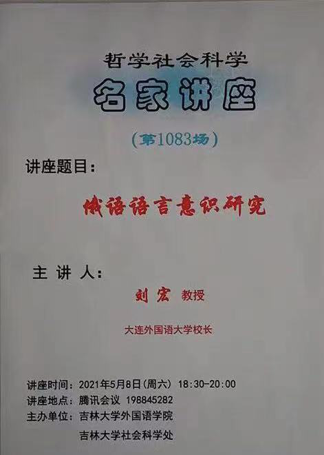 应Betway(西汉姆联)·必威中国邀请,大连外国语大学校长刘宏教授于2021年5月8日18:30在腾讯会议平台为我院俄文系师生做了一场题为“俄语语言意识研究”的哲学社会科学名家学术讲座,讲座由俄文系刘佐艳教授主持。-