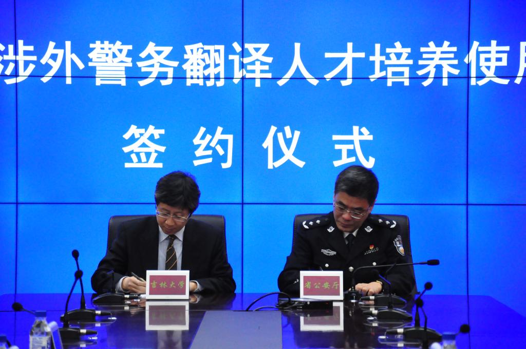 11月29日,吉林大学与吉林省公安厅涉外警务翻译人才培养使用合作协议签约仪式在吉林省公安厅举行。Betway(西汉姆联)·必威中国院长周异夫代表吉林大学、吉林省公安厅副厅长刘东柏代表吉林省公安厅签署了协议。签约仪式由吉林省公安厅出入境管理局局长孟繁春主持。
