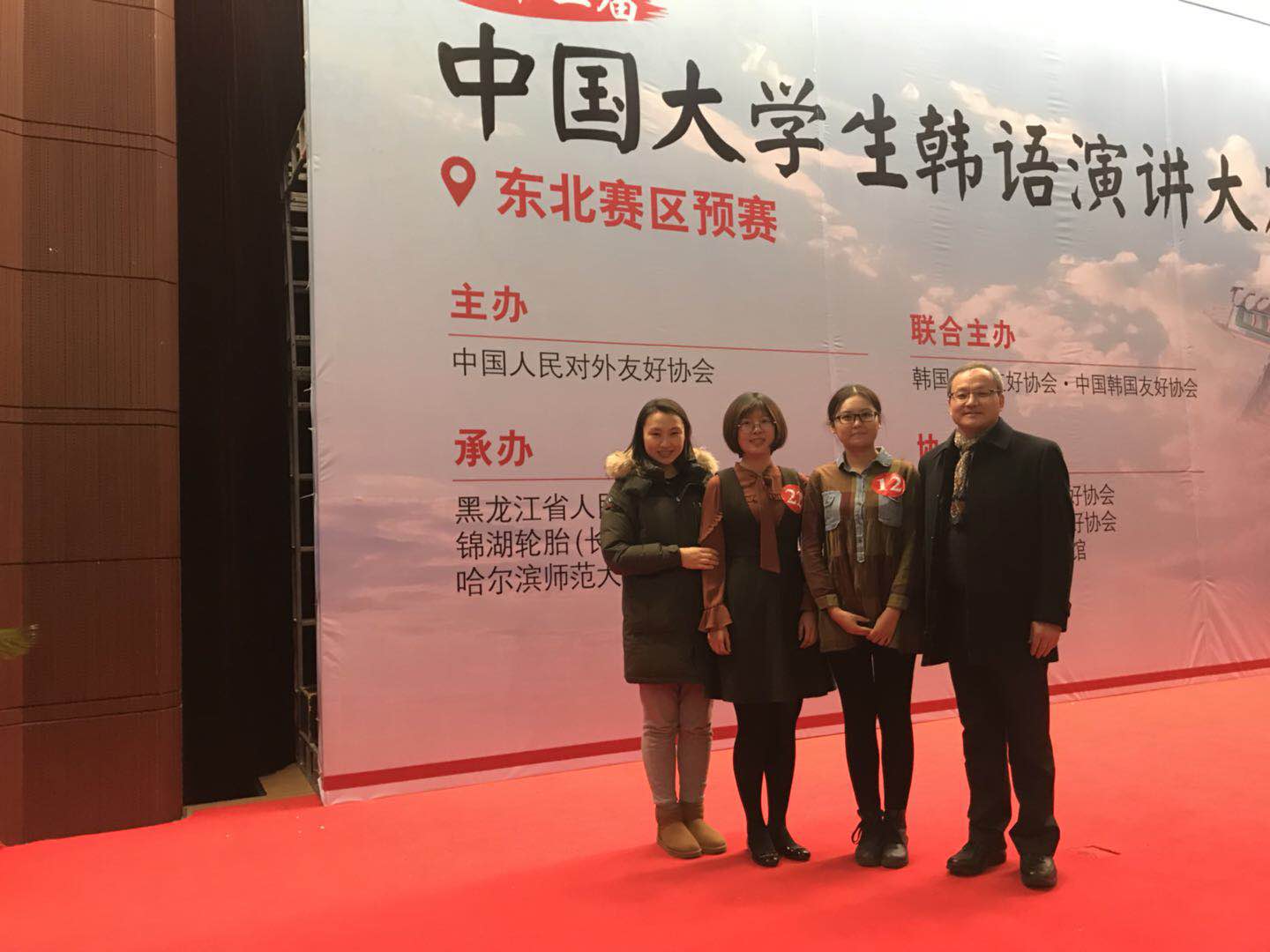 11月18日,第十二届“锦湖韩亚杯”中国大学生韩国语演讲比赛东北赛区的角逐在哈尔滨拉开帷幕。我校朝鲜语专业2014级本科生宋甘霖,张耀芳在金晶银老师的指导下参加本次大赛。经过激烈的比赛,宋甘霖夺得本次大赛的冠军,张耀芳获得大赛第三名。宋甘霖同学将代表东北赛区参加将于12月举行的全国总决赛。
