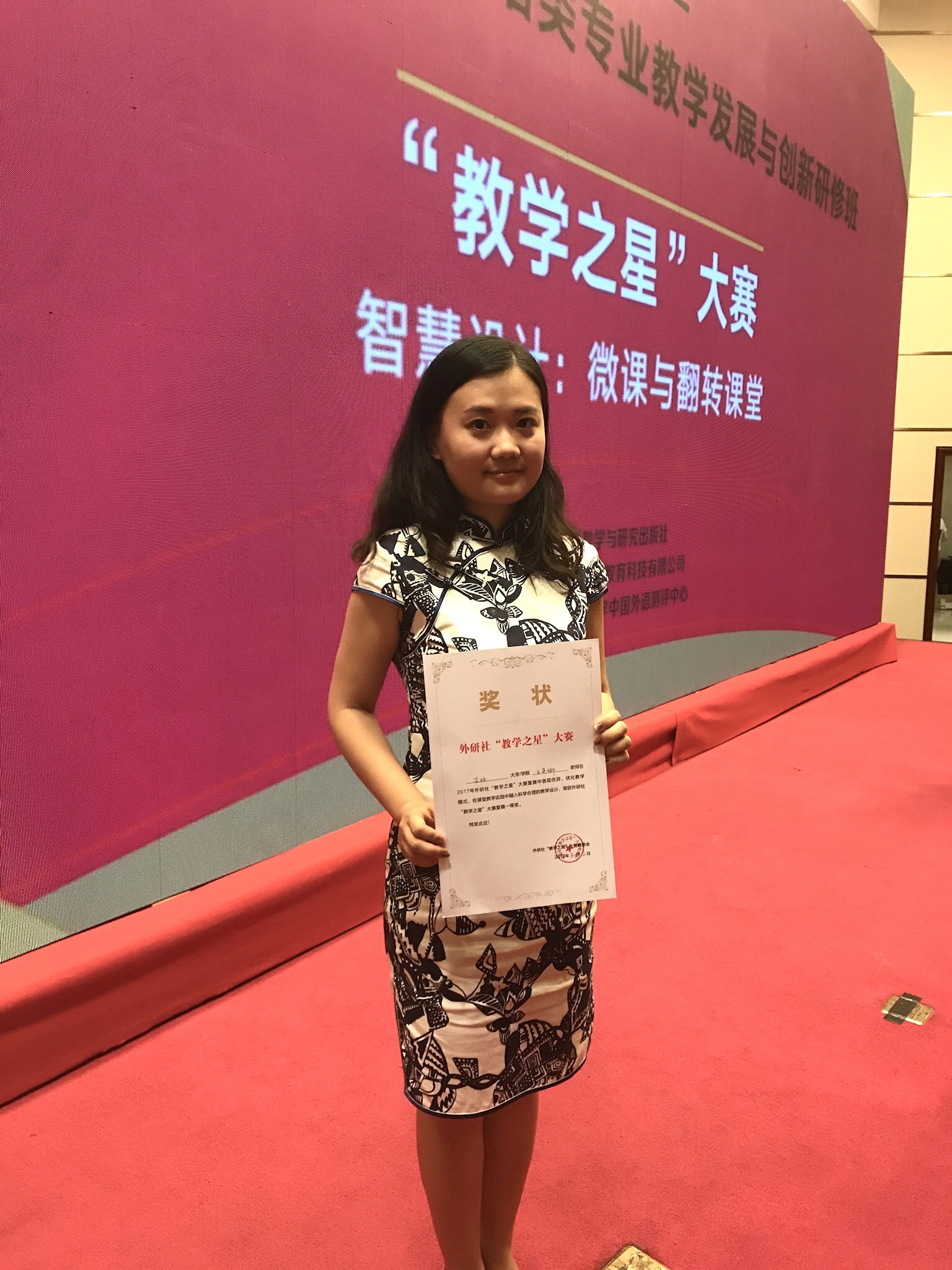 近日,2017年外研社“教学之星”大赛英语专业组复赛在杭州闭幕。我院英语系教师王英娜博士获得一等奖。