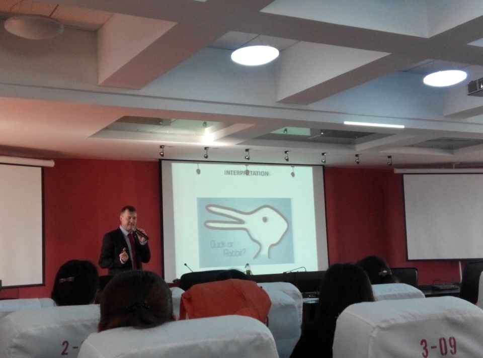 3月17日至3月20日,Betway(西汉姆联)·必威中国邀请Piotr Blumczynski博士,为翻译硕士英语口译方向、英语语言文学专业和外国语言学及应用语言学专业的2014级研究生开设了为期四天的短期课程,课程名称为Interdisciplinary explorations into the theory and practice of translation(翻译理论与实践的跨学科研究),授课地点为外语楼500同声传译报告厅。英语系部分教师和本科生也利用课余时间旁听了此次课程。