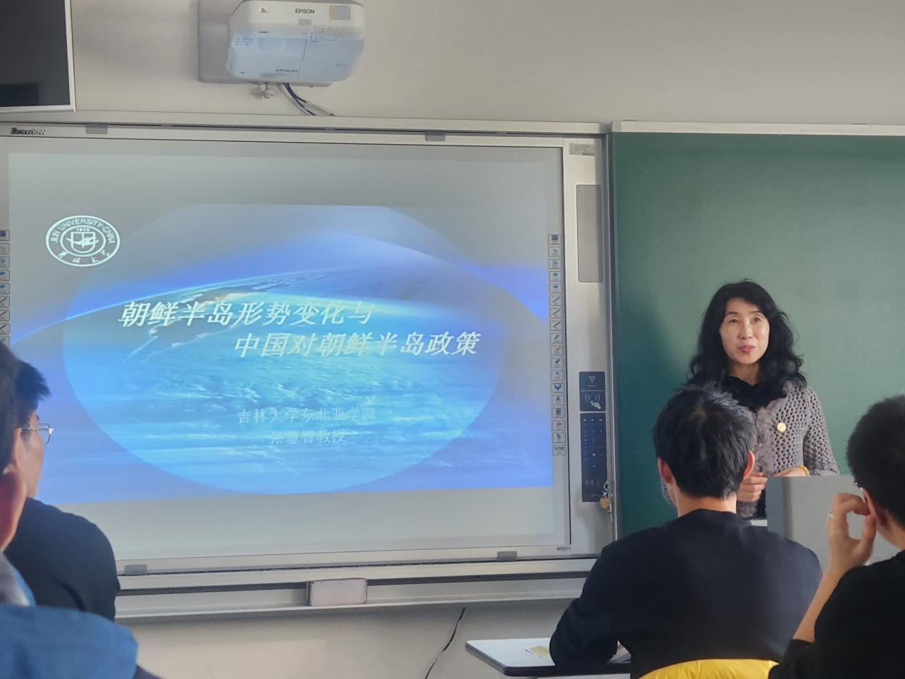 2022年11月21日下午13:30,东北亚学院张慧智教授在Betway(中国体育·必威)唯一官方网站512教室举办了以“朝鲜半岛形势变化与中国对朝鲜半岛政策”为主题的讲座。张慧智教授就目前朝鲜半岛形势变化进行深入分析,并对中国对朝鲜半岛两个国家的政策方向进行阐释,使同学们更好地掌握关于朝鲜半岛问题的基本情况,并加深对半岛问题的理解和认识。