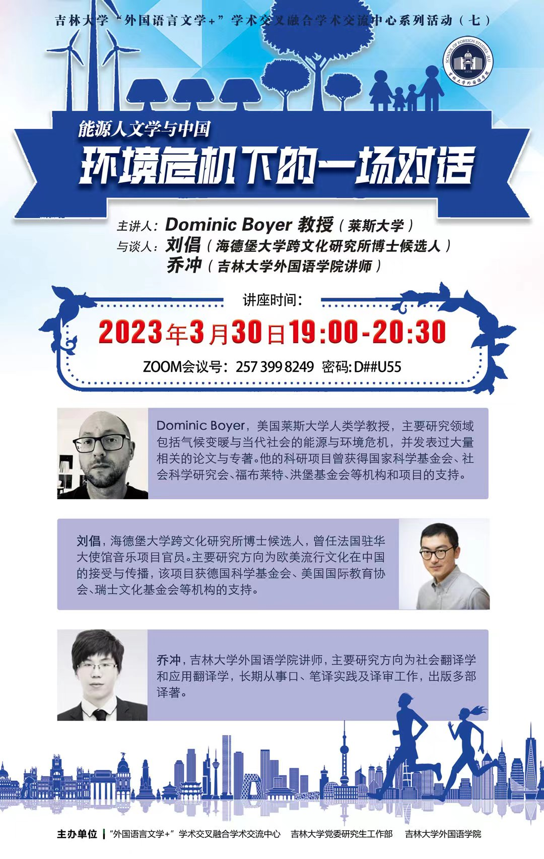 3月30日晚,美国莱斯大学能源人文学研究中心主任、教授多米尼克·博伊尔(Dominic Boyer)为我院师生做了一场主题为“能源人文学”的线上讲座。讲座还特别邀请了德国海德堡大学的刘倡博士就能源人文学在中国的研究现状进行了介绍。我院英语系教师、硕士、博士研究生参与了讲座,并积极与两位学者进行了交流。