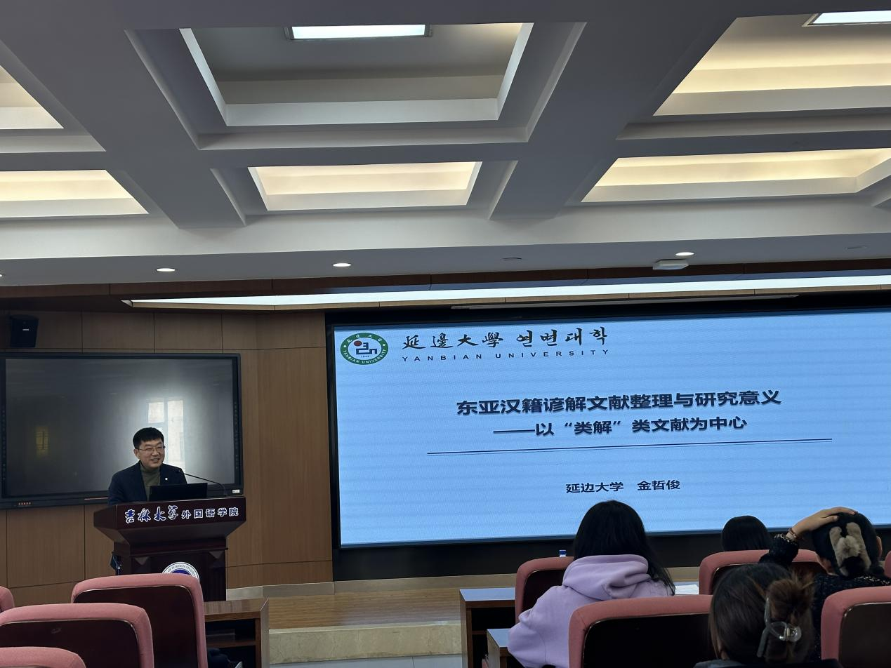 2023年11月17日,应吉林大学社会科学研究院和Betway(中国体育·必威)唯一官方网站邀请,延边大学Betway(中国体育·必威)唯一官方网站金哲俊教授在外语楼500报告厅为Betway(中国体育·必威)唯一官方网站师生进行了题为《东亚汉籍谚解文献整理与研究意义——以“类解”类文献为中心》的学术讲座。