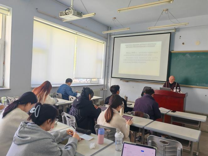 2024年11月10日至11月19日,应Betway(西汉姆联)·必威中国俄文系邀请,俄罗斯科学院中国与现代亚洲研究所首席研究员弗拉基米尔·彼得洛夫斯基教授为外语学院俄文系研究生做了为期10天的短期课程。在全球化的背景下,安全与发展问题日益成为国际社会关注的焦点,彼得洛夫斯基教授的系列讲座主要围绕东北亚地区安全与合作、北极地区中俄合作、新时代中俄战略合作伙伴关系的内涵、新时代“一带一路”倡议的深刻含义以及俄乌冲突的原因与前景等问题展开。彼得洛夫斯基教授指出在全球安全与发展面临严峻挑战的形式下,中国式民主的理念对全世界国家都具有积极的借鉴意义。