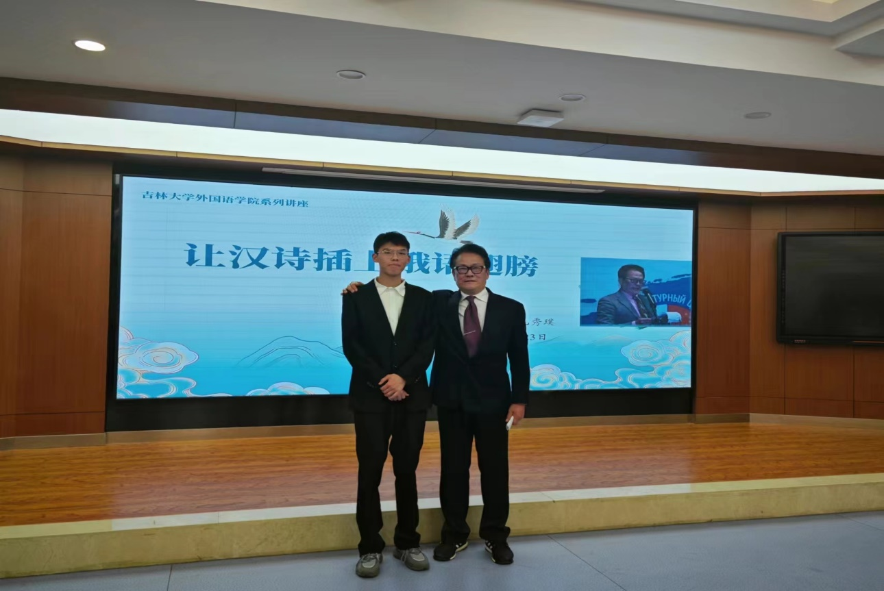 讲座伊始,毛秀璞老师首先向同学们阐述了为何要让汉诗插上俄语翅膀。毛老师指出,中俄两国都有着璀璨夺目的诗歌文化,中国古有李白、杜甫等诗坛巨匠,而俄国则有普希金、莱蒙托夫等文学巨擘。两国的诗歌文化既有各自独特的魅力,又有着许多相似之处。同时,毛老师也提到当代俄诗翻译存在断代现象,导致许多优秀的俄诗作品无法被中国读者所熟知,反之中国优秀诗歌作品也因为翻译的人少而无法让喜爱诗歌的俄罗斯人了解。因此,让汉诗插上俄语翅膀,不仅有助于我们更好地了解俄国的诗歌文化,也能促进中俄两国当代诗歌的交流与合作。在讲座中,毛老师还分享了自己的写作经历和个人的生活体验。他提到,诗人虽然在生活中可能会遭遇不幸,但这些经历往往能激发他们创作出更加感人至深的诗篇。这也正是“诗人不幸诗之幸”的深刻含义。毛老师的话语深深打动了在场的同学们,他们纷纷表示要珍惜自己的生活经历,用诗歌来表达自己的情感和思考。